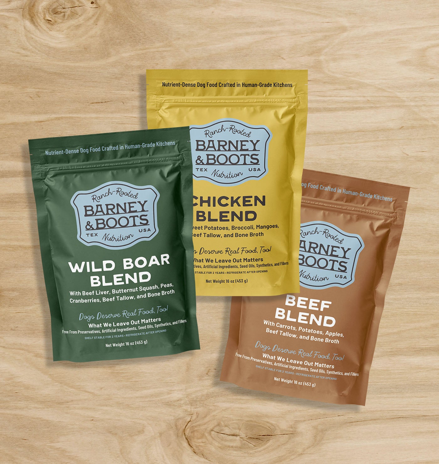 At Barney & Boots, our nutrient dense, shelf-stable meals are made with premium sourced whole foods and tallow, and gently cooked in small batches so you can trust what’s in every bite. Packed with delicious nutrition — no synthetics, seed oils, or fillers — we believe all dogs deserve food as genuine as the love they give.